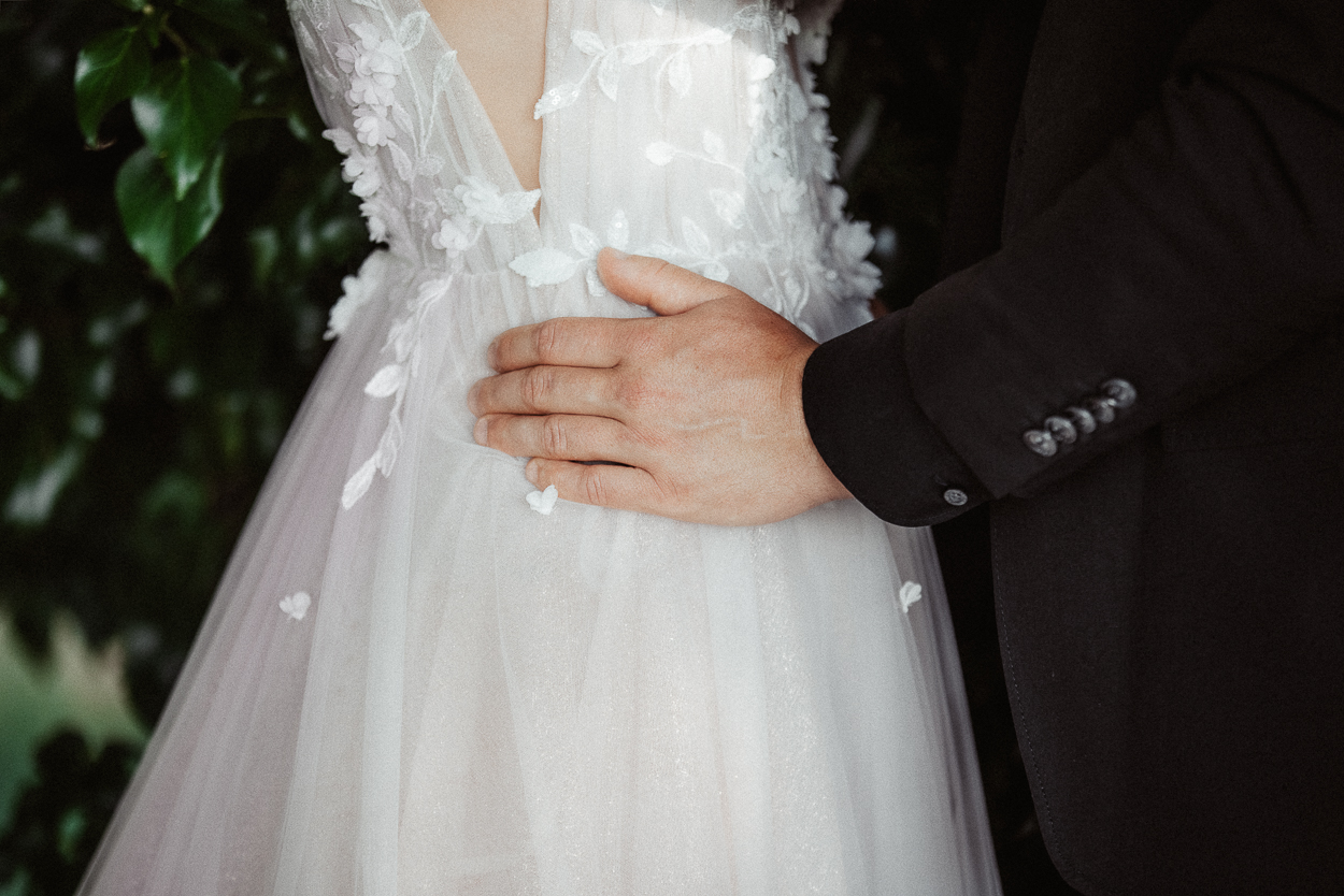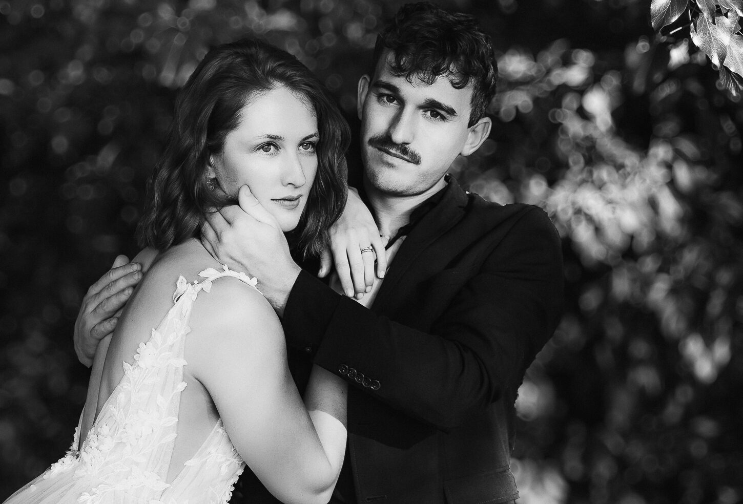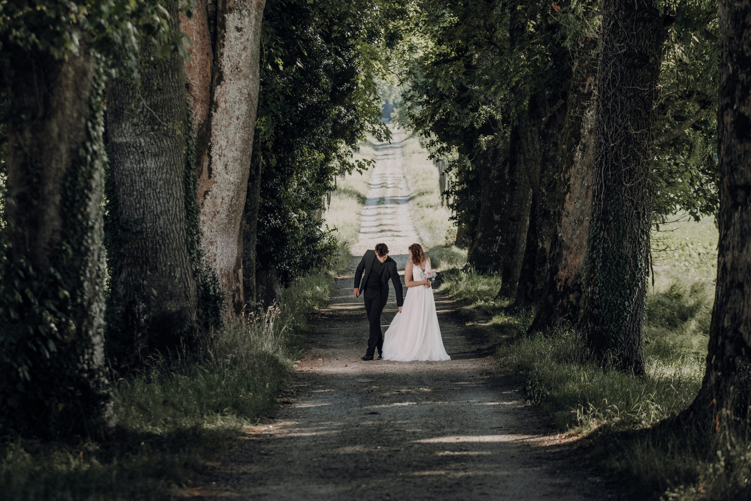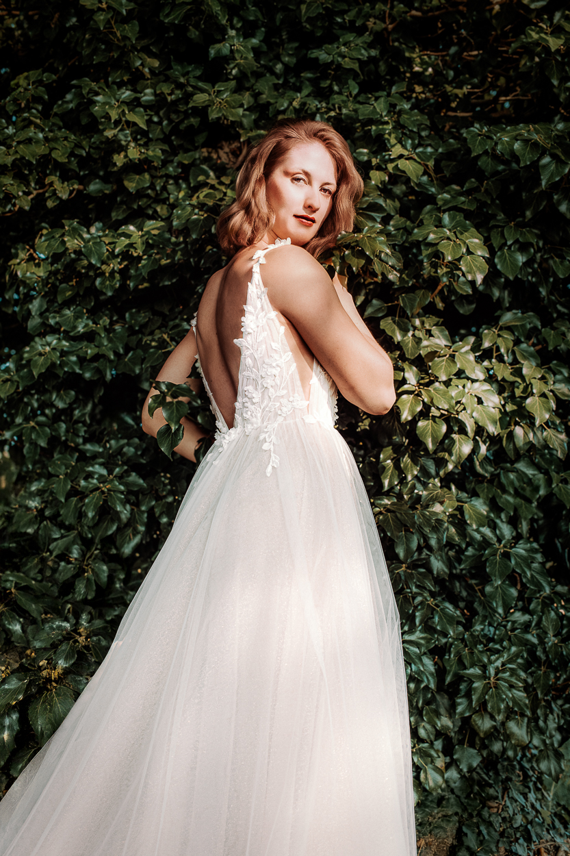 Der Weg durch die Baumallee wird zur Bühne für kontrastreiche Portraits voller Tiefe und Ausdruck. Zwischen Lichtstreifen, schattigen Pfaden und flüsternden Blättern fangen die Bilder zugleich Nähe, Weite und Bewegung in einem Gefühl des Zeitstillstands ein. Auf diesem gemeinsamen Lebensweg verbinden sich Selbstbestimmung und Hingabe. Jeder Blick und jede Geste erzählt das Versprechen zweier Menschen: „Eines werde ich in diesem Leben mit Sicherheit tun: dich lieben, mich nach dir sehnen und dich immer in meinem Herzen tragen.“