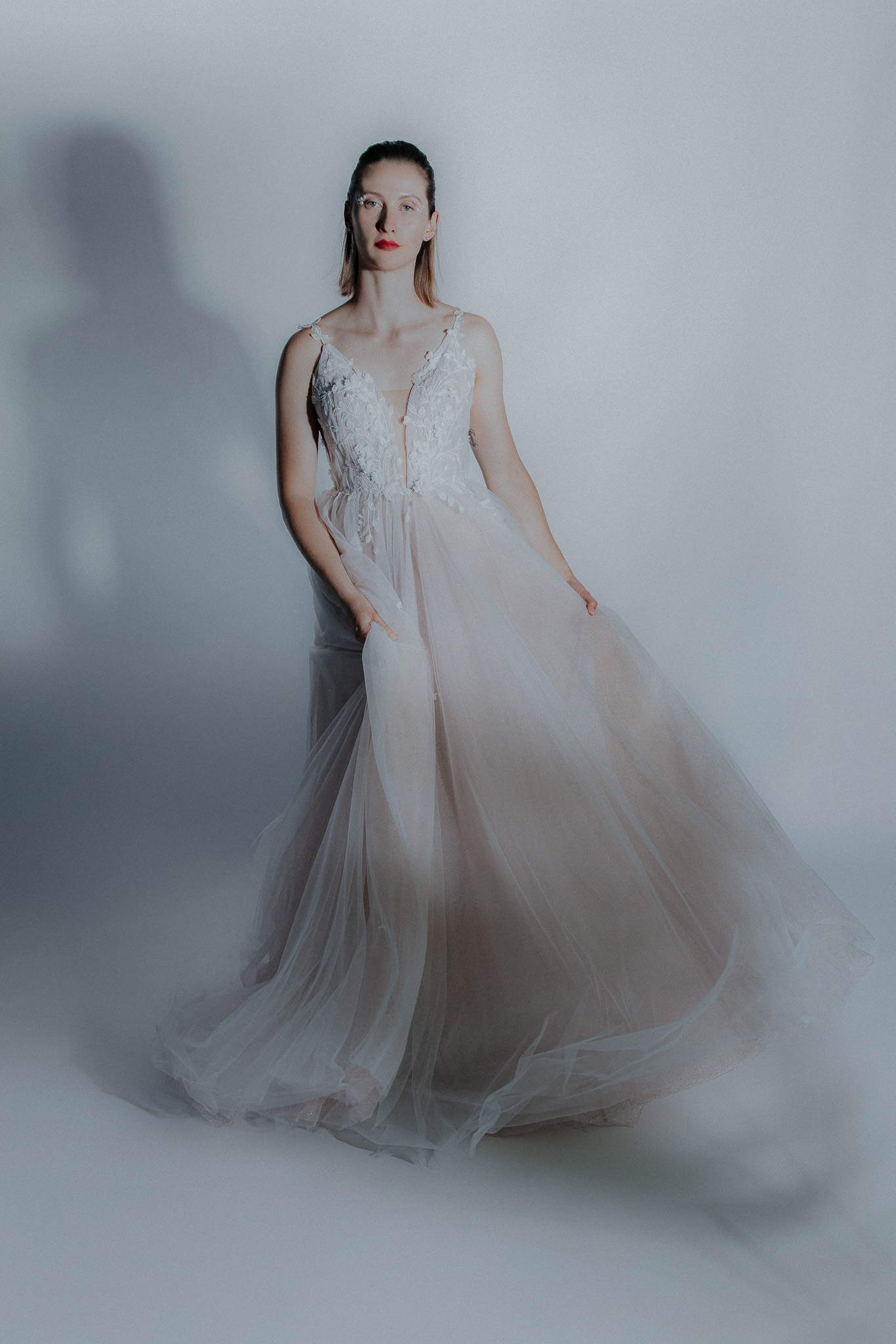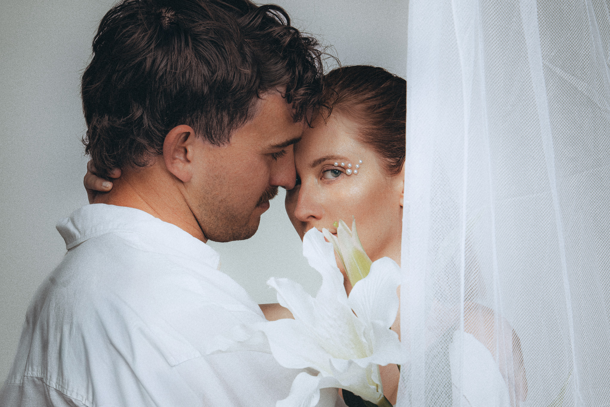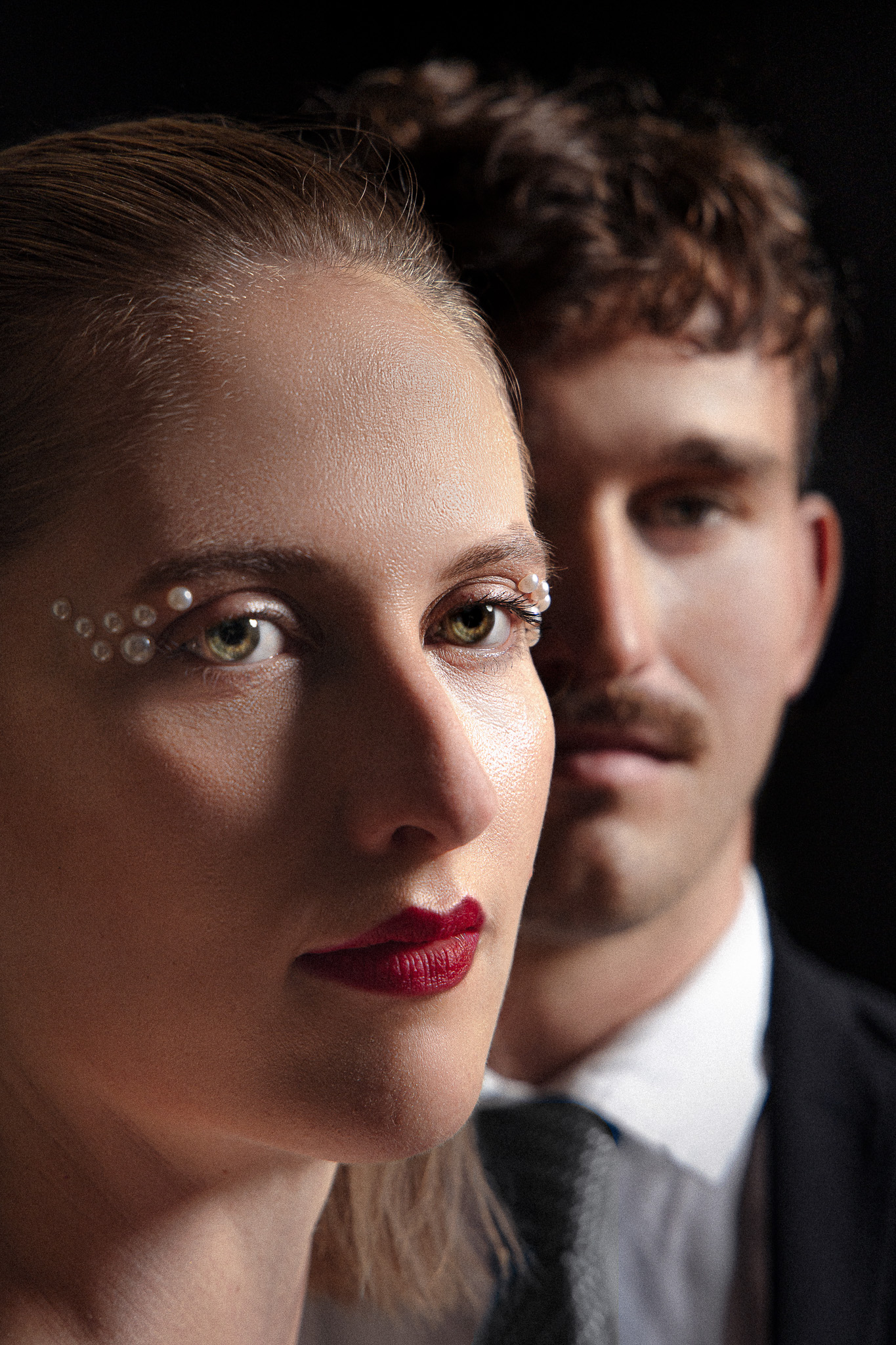 Zwischen präzisen Schatten und minimalistischer Eleganz entstehen Studio-Portraits, die wirken wie Standbilder eines ARTHOUSE Films. Ein Setting für Momente voller Intensität, in denen zwei Menschen zugleich sich selbst und einander begegnen.
